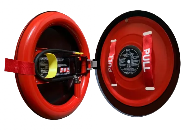 With the FIRECOMBO product, you can now integrate fire safety throughout the building into a single perfect system. The hydrant is elegantly hidden, while its doors adorn a designer fire extinguisher of your choice.